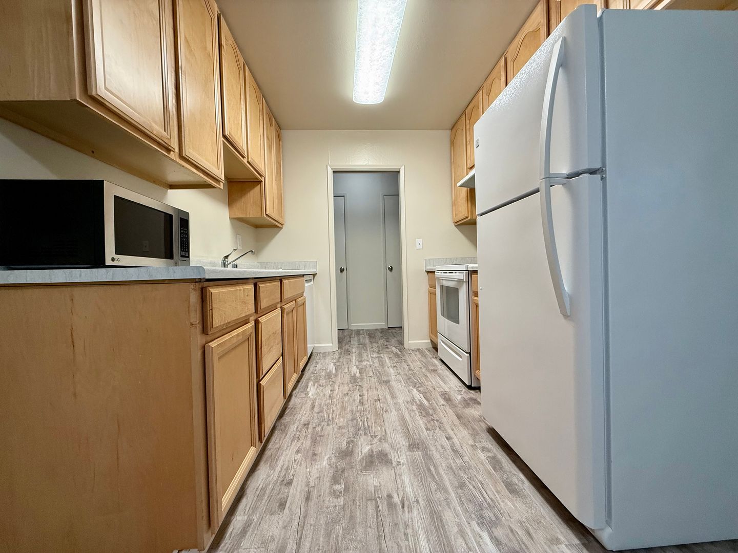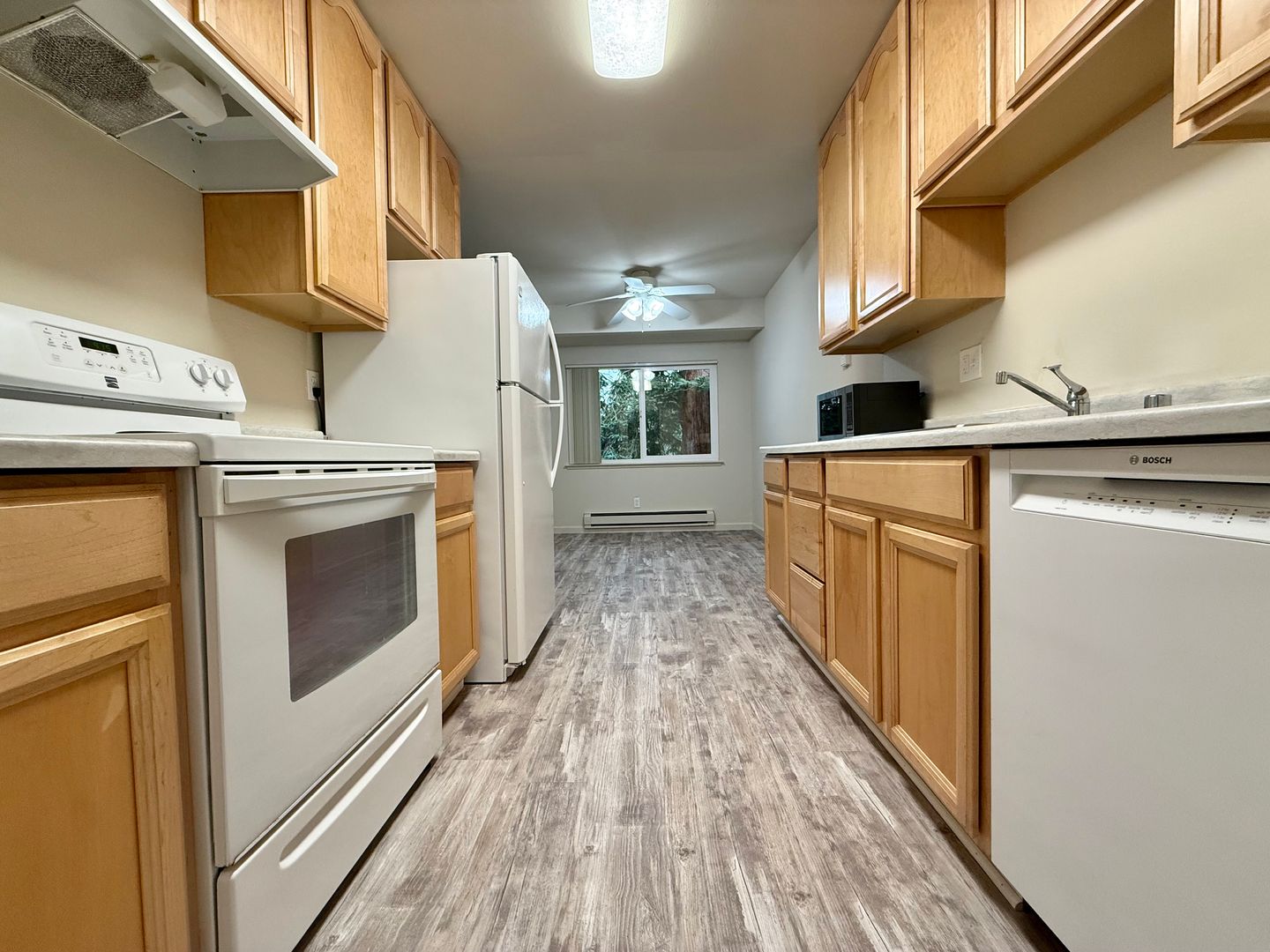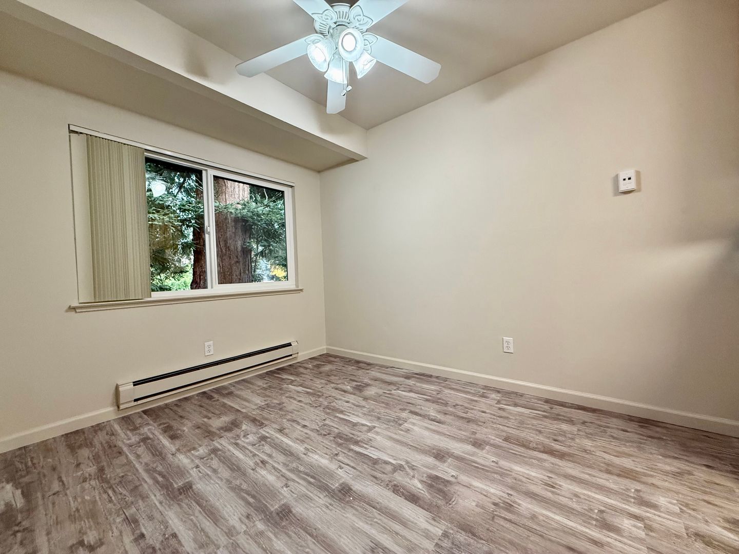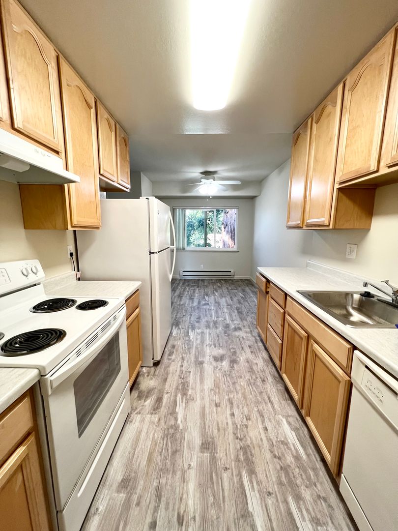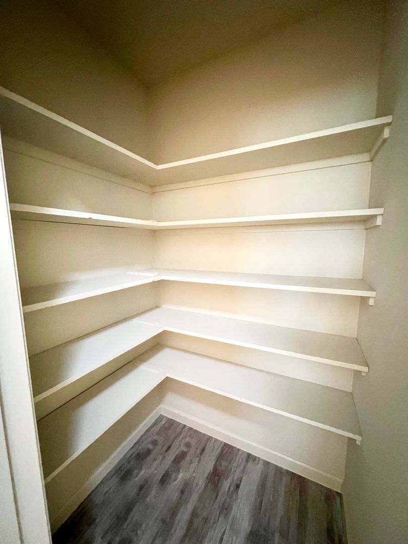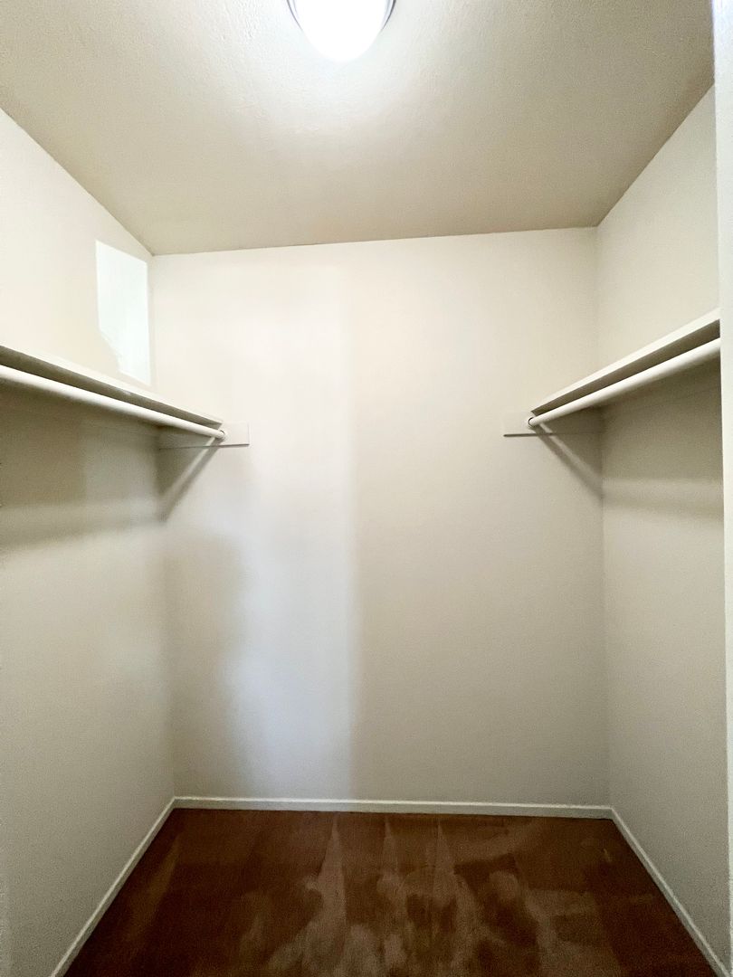 Ample storage space truly sets this complex apart i.e. A large pantry, hall closet, walk-in linen closet, large bedroom walk-in closets and additional storage space in the parking area upon request. The apartment opens onto a courtyard with towering redwoods surrounding the building to give on a feeling of privacy while providing cooling shade.