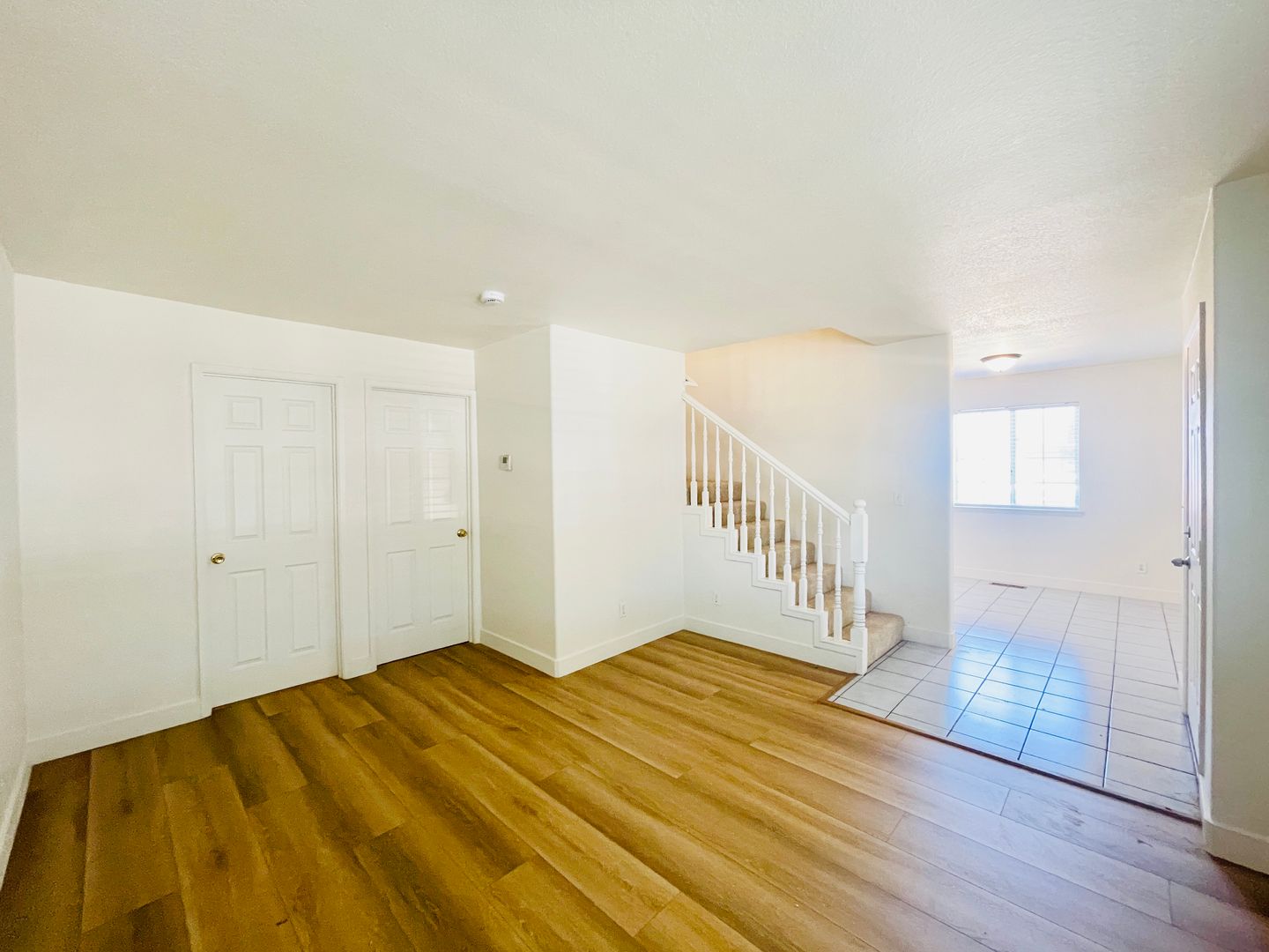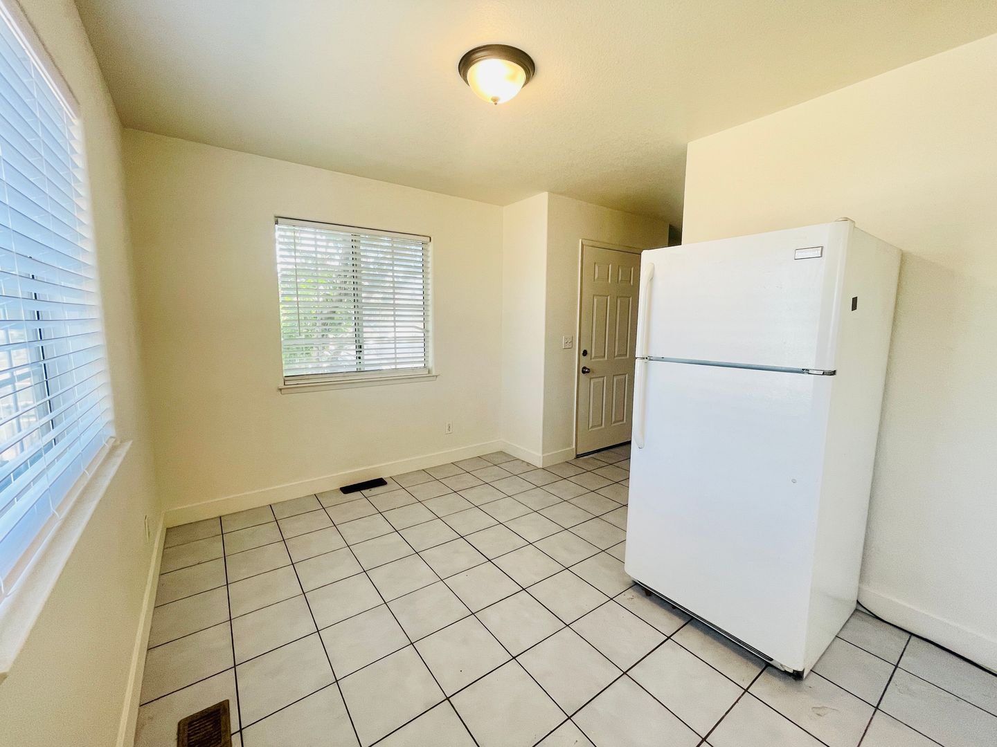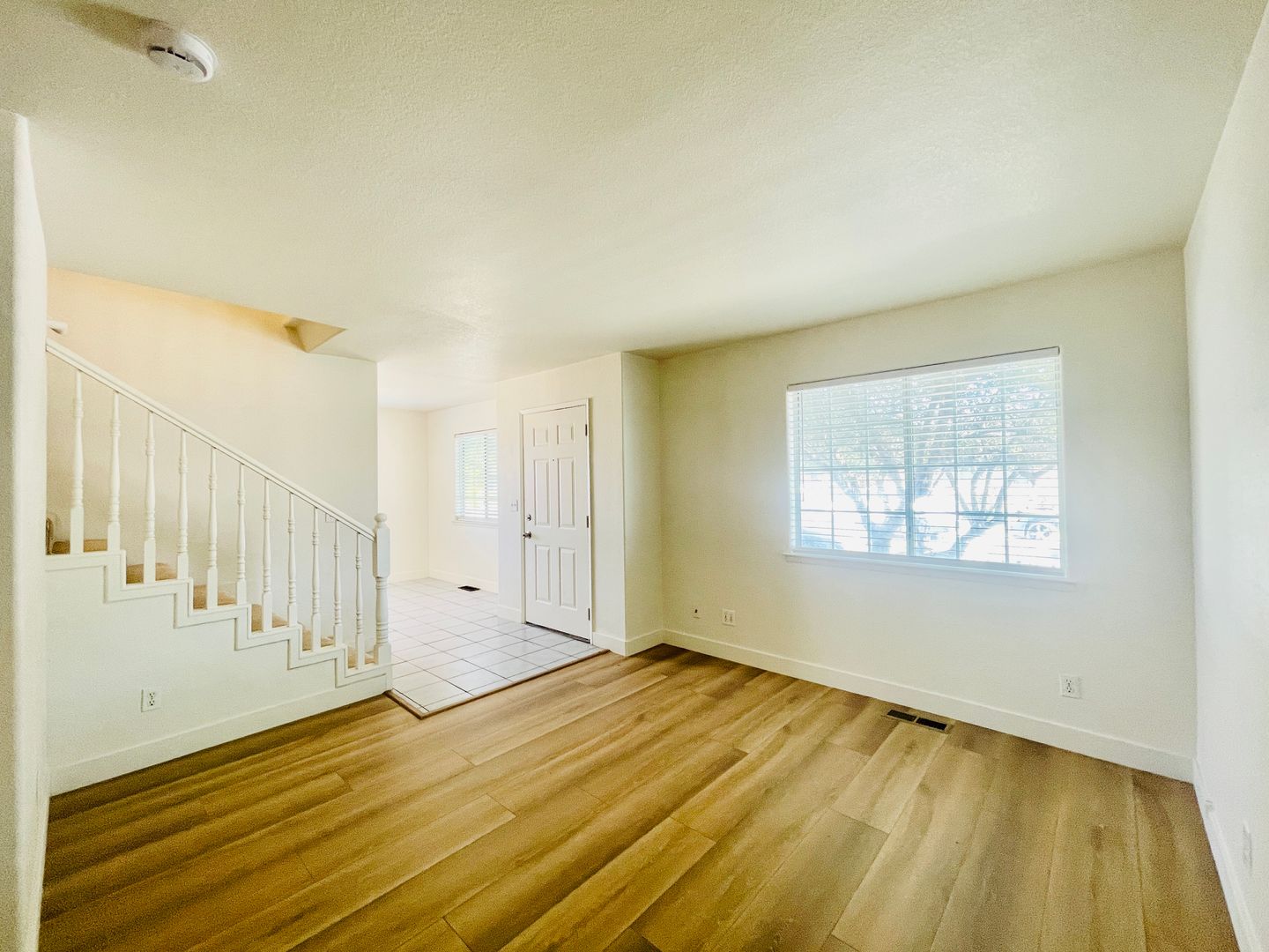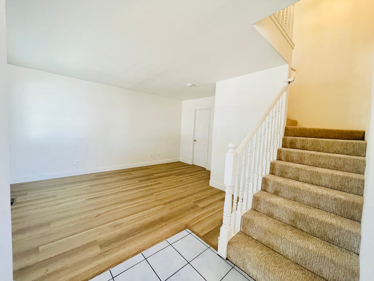 This San Jose unit in a triplex features over 850 square feet of living space. It features 2 bedrooms and 2 bathrooms, kitchen, dining room, and living room.
