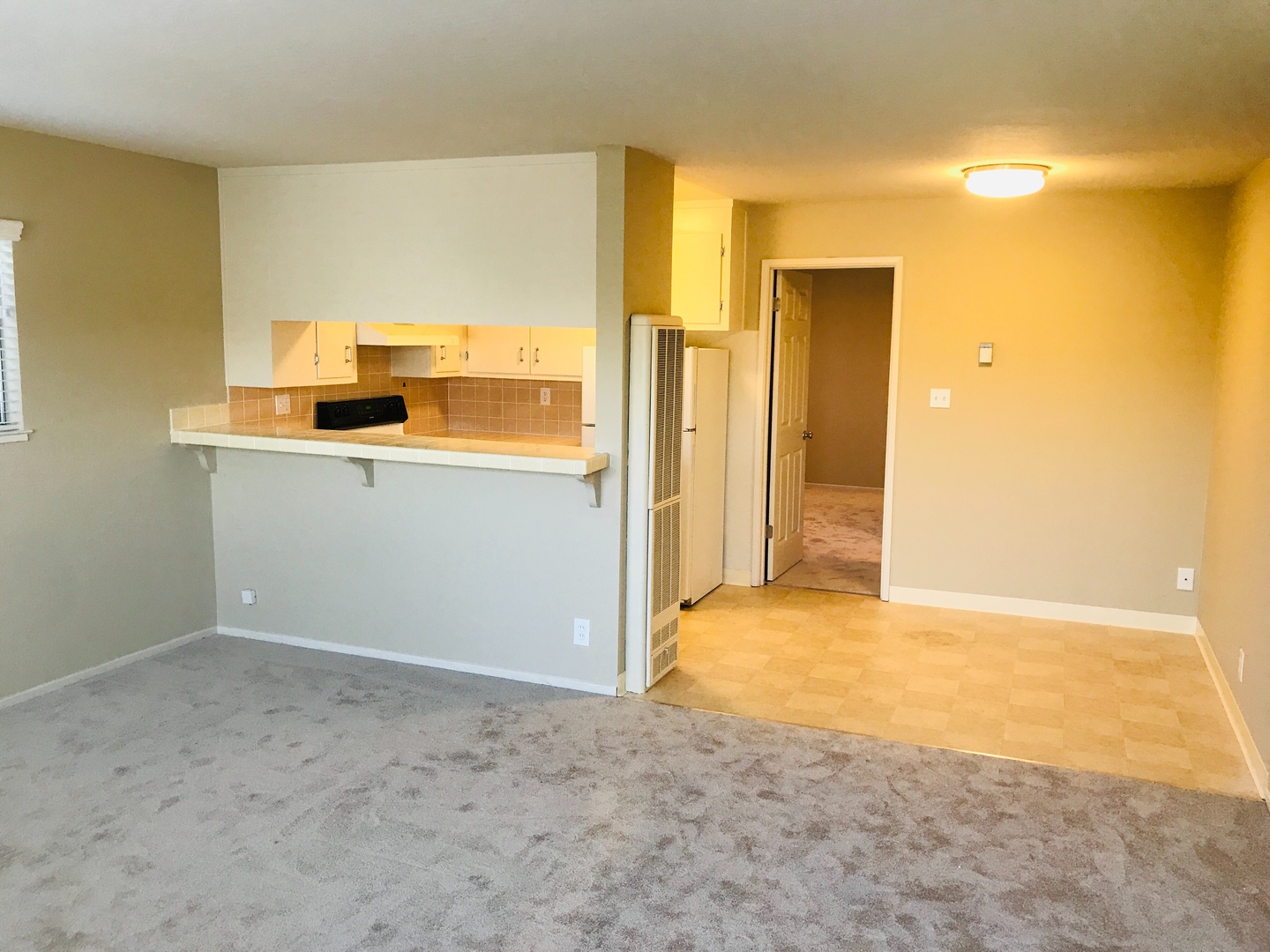 This beautiful 1 bed 1 bath apartment offers over 650 square feet of living space. The kitchen features plenty of cabinet space, stove/oven, refrigerator, and nicely resurfaced tile countertops. The apartment has been freshly painted and has carpet installed throughout. New carpet in the living room. Bedroom has 2 closets, one small walk-in closet and a nice closet with two sliding doors.