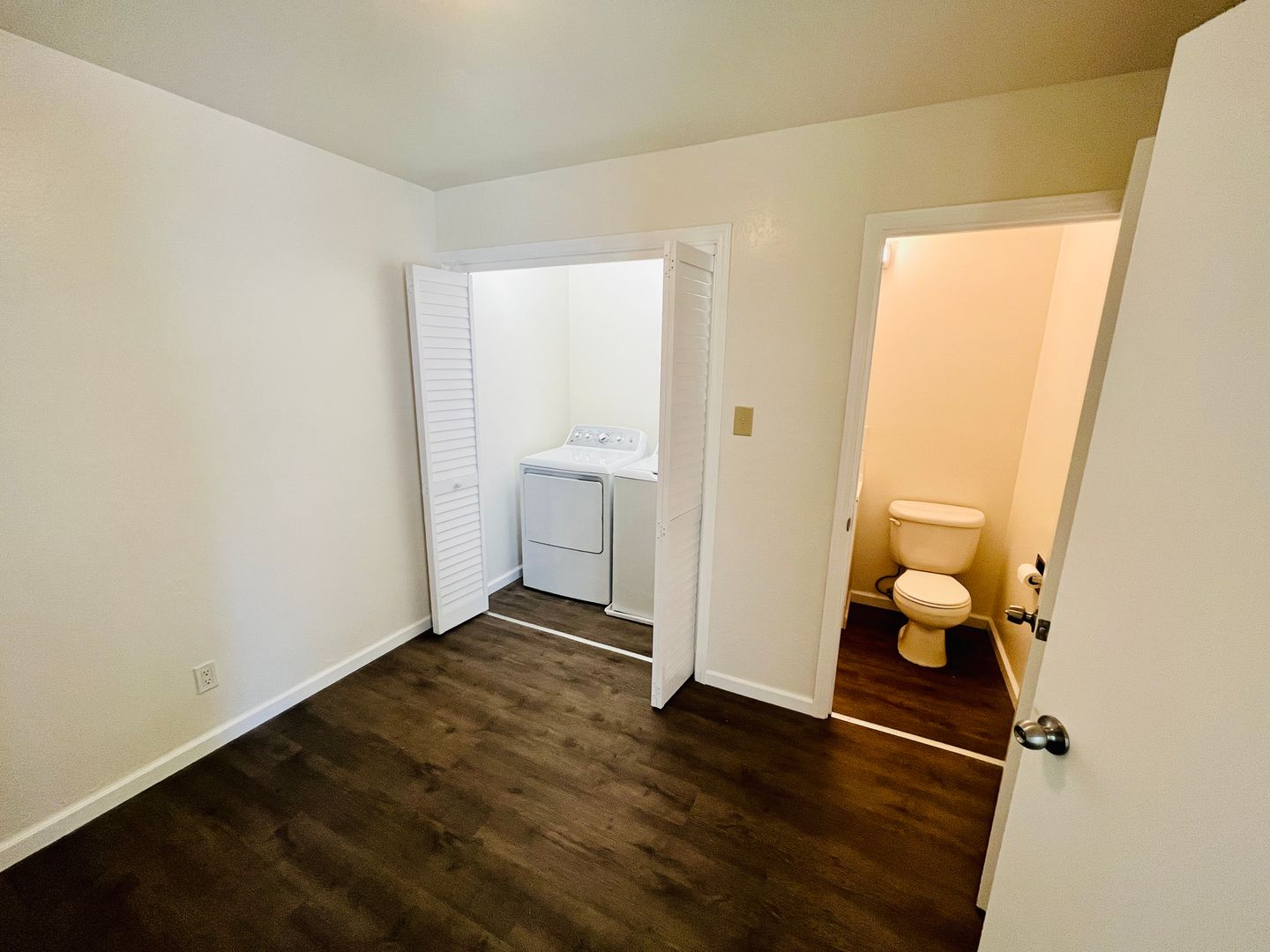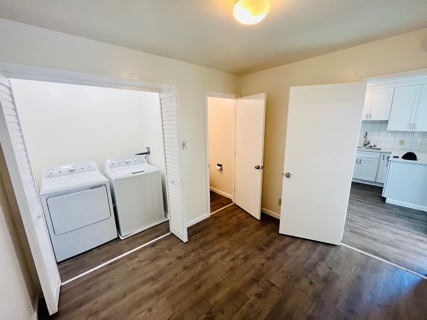 Beautifully remodeled Mountain View duplex! This back unit is a two bedroom, one and a half bath with fresh paint throughout. Plenty of closet space for storage and a laundry room complete with new washer/dryer. The Kitchen includes stainless steel appliances with built in dishwasher. New concrete has been poured for a warp around walkway connecting the front and backyard. A must see!
