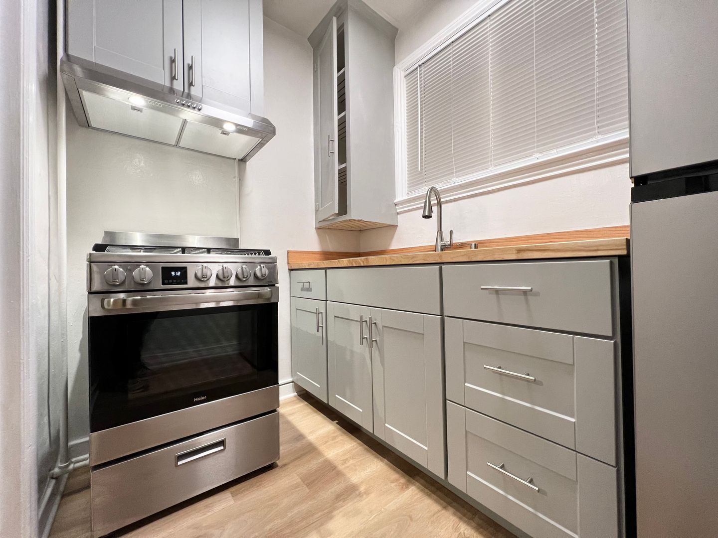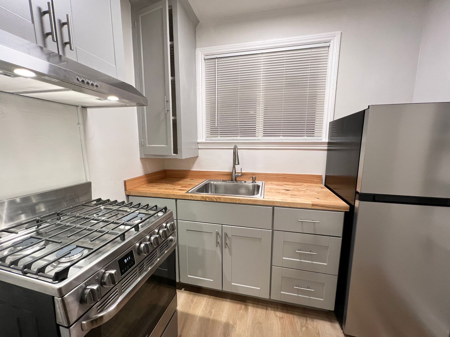 This beautifully remodeled 1 bed 1 bath apartment features around 420 square feet of living space. Updated kitchen with new cabinets, countertops, and stainless steel appliances.