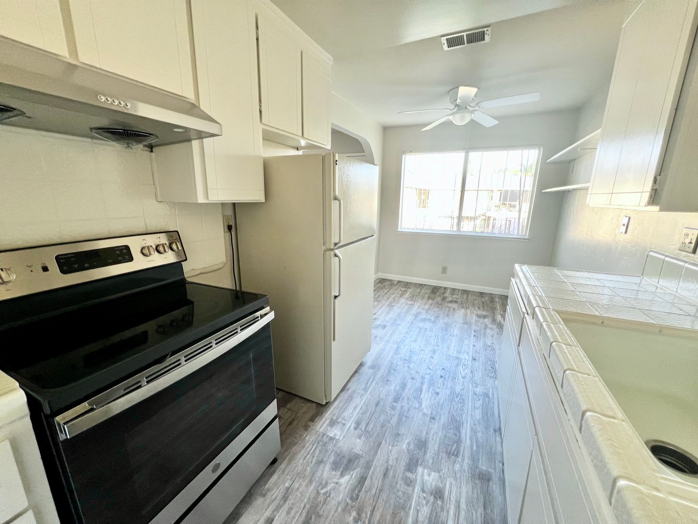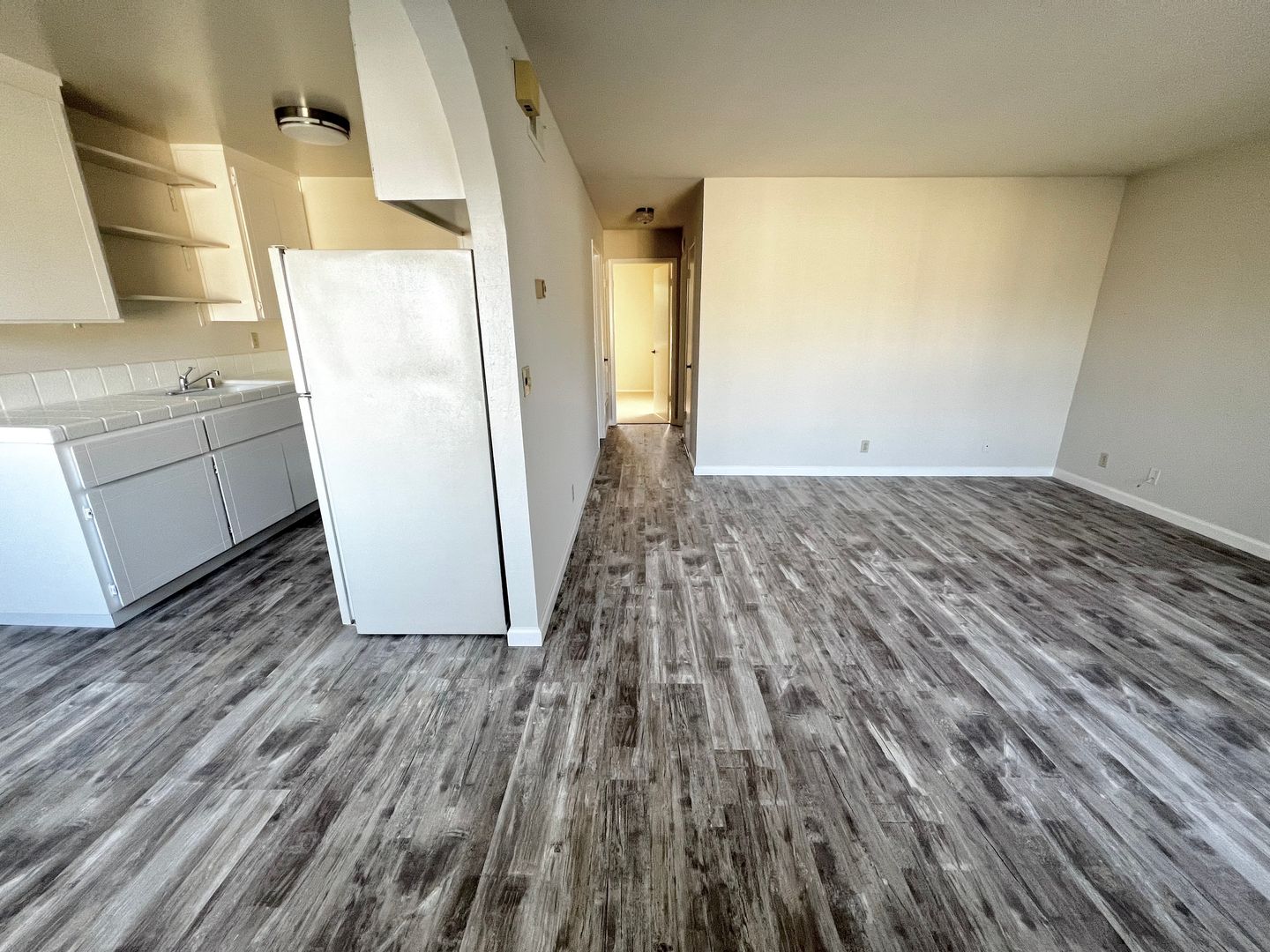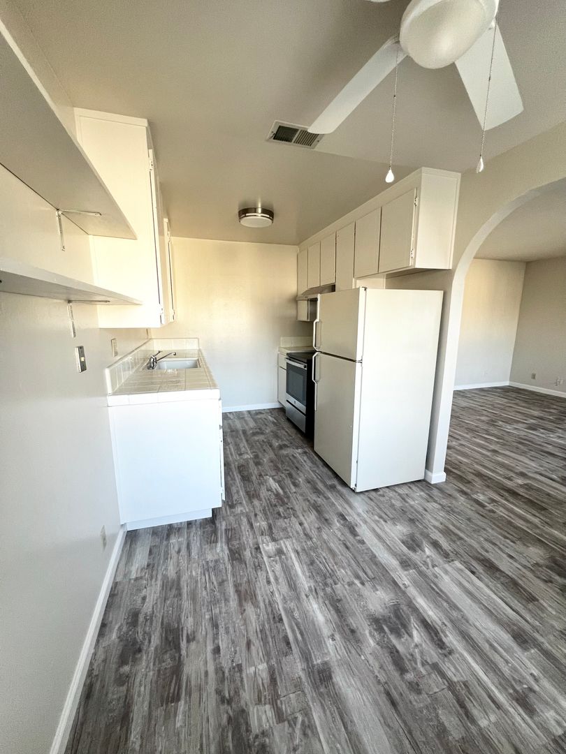 Renovated, spacious second-floor apartment with new modern/trendy hardwood-like vinyl flooring.