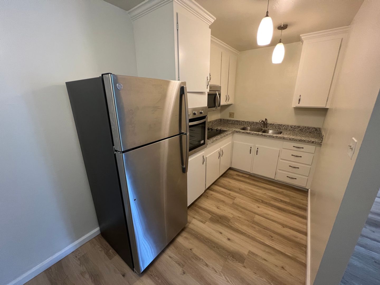 This beautifully remodeled apartment offers over 650 sf of living space in a beautiful, well-kept complex on Homestead Road in Santa Clara. Close to Santa Clara University, Kaiser Permanente, Apple Loop Campus and minutes from Central park. This upgrade includes a brand new kitchen featuring granite countertops, stainless steel appliances, and custom cabinetry. Abundant cabinet space in kitchen for storage. New laminate flooring. Freshly painted throughout. New plantation blinds.