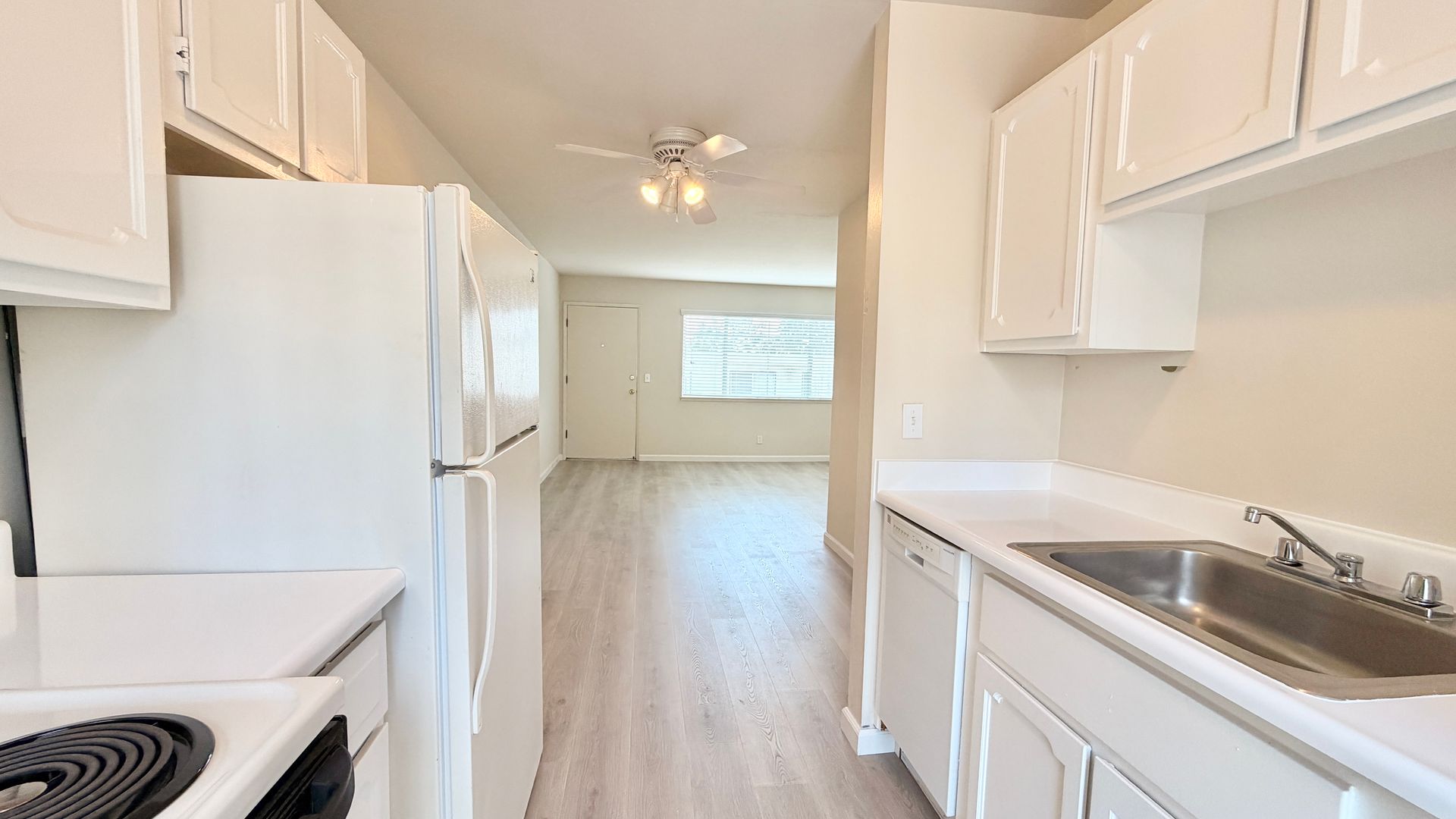 This beautifully renovated apartment is in an adorable 36-unit complex. There is a pool in a wonderful garden setting. This very clean unit comes with a dishwasher, a self-cleaning stove, a frost-free refrigerator, and ceiling fans. We are centrally located in the Cupertino School district, very close to the New Apple Space Ship, Interstate 280, 17, Lawrence Exp, and San Tomas.
